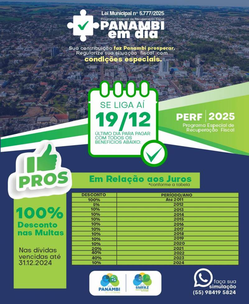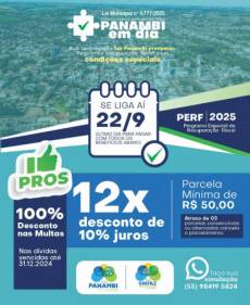 ATENÇÃO, CONTRIBUINTES PANAMBIENSES! O REFIS 2025 chegou!